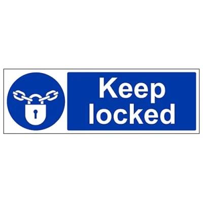 V Safety Keep Locked Landscape 450 x 150 mm 2mm Rigid Plastic Sign