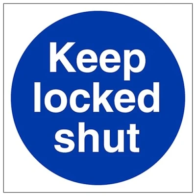 V Safety Keep Locked Shut 100 x mm Self Adhesive Vinyl Aluminium Effect Sign