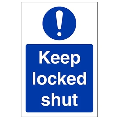 V Safety Keep Locked Shut Portrait 150 x 200 mm Self Adhesive Vinyl Aluminium Effect Sign