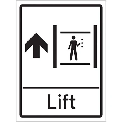 Help visitors and staff on your premises to easily locate lifts Ideal for use in a huge variety of environments and workplaces Specifically designed signs ensure the information is relevant to the setting Complies with the Health and Safety (Safety Signs and Signals) Regulations 1996 and EN ISO 7010:2012 ighly durable – made from reliable self adhesive aluminium effect vinyl