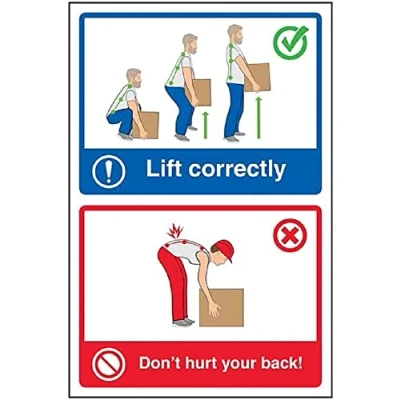 V Safety Lift Correctly/Don't Hurt Your Back! 400x600mm Self Adhesive Vinyl Sign