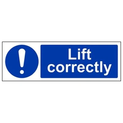 Helps to fulfil legal obligations to advise employees and visitors of specific actions and behaviour which must be adhered to in order to ensure personal safety as per Health and Safety (Safety Signs & Signals) Regulations 1996 Conforms to EN ISO 7010:2012 - Mandatory Signs feature a round symbol with a blue background of at least 50% of the total sign area, with a white pictogram and text Landscape Orientation. Sign reads "Lift Correctly" Highly durable 1mm plastic material and screen printed message will stand the test of time Sign measures 300 x 100mm