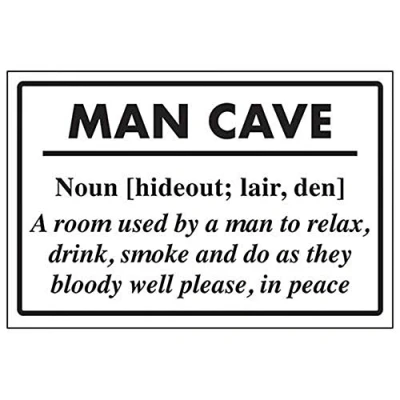 V Safety Man Cave/Noun (Hideout; Lair, Den) Sign 400mm x 300mm Rigid Plastic