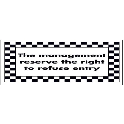 V Safety Management Reserve the Right to Refuse Entry Sign 200mm x 150mm Self Adhesive Vinyl