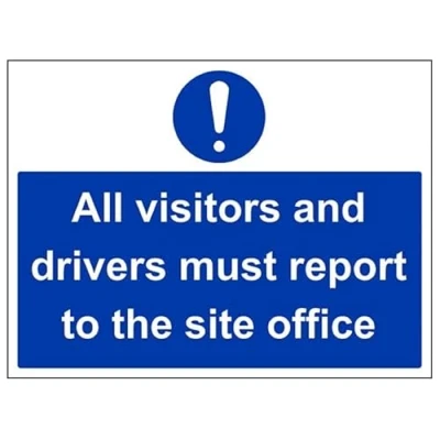V Safety Mandatory General Visitors & Drivers Must Report To Site Office 600 X 450MM Sign With Snap Frame
