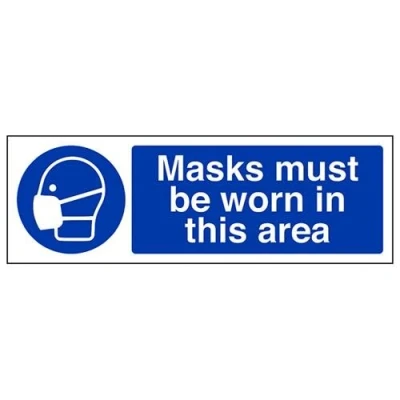 Helps to fulfil legal obligations to remind staff and visitors to wear the appropriate PPE when required to ensure personal safety as per Health and Safety (Safety Signs & Signals) Regulations 1996 Conforms to EN ISO 7010:2012 - Mandatory Signs feature a round symbol with a blue background of at least 50% of the total sign area, with a white pictogram and text Landscape Orientation. Sign reads "Masks Must Be Worn In This Area" Highly durable 1mm plastic material and screen printed message will stand the test of time Sign measures 300 x 100mm