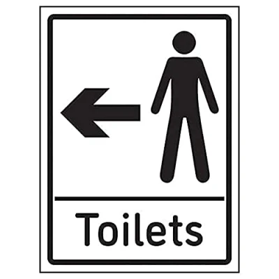 Provide directions to facilities on your premises Clear and easy to understand - black symbol and black text on a white background Conforms to EN ISO 7010:2012 Highly durable – made from durable self-adhesive flexible vinyl