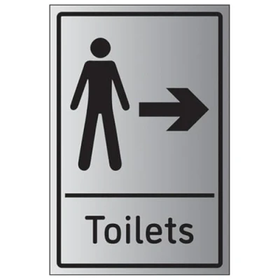 V Safety Mens Toilets Arrow Right 150mm x 200mm 1.6mm Aluminium Effect Rigid Plastic