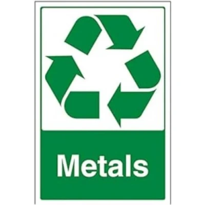 Portrait orientation. Sign reads Metals Highly durable, self adhesive, vinyl material and screen printed message will stand the test of time 73007AU-S Color:Green
