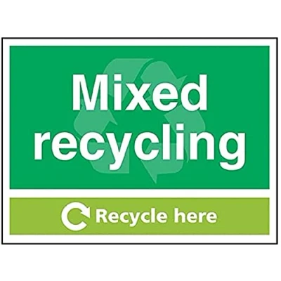 V Safety Mixed Recycling Recycle Here 600x450mm Self Adhesive Vinyl Sign