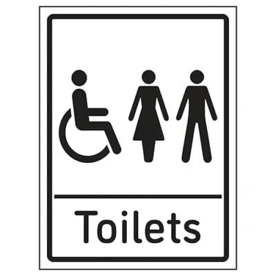 Ensure rooms, facilities and directions are all prominently displayed Provide directions to facilities on your premises Clear and easy to understand - black symbol and black text on a white background Conforms to EN ISO 7010:2020 2mm Super-Tough Rigid Plastic, impact-resistant, shatterproof, and designed to withstand vandalism and harsh environments.