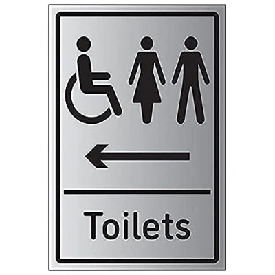V Safety Mixed Toilets Arrow Left 150mm x 200mm 1.6mm Aluminium Effect Rigid Plastic