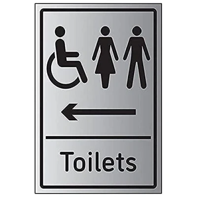 Provide directions to facilities on your premises Clear and easy to understand - black symbol and black text on a white background Conforms to EN ISO 7010:2012 Aluminium effect finish provides a professional appearance whilst guaranteeing compliance with relevant legislation