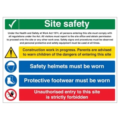 Clearly indicates that protective footwear is required on this multi-hazard site. Please refrain from entry without proper footwear to ensure safety. Lightweight and easy to transport, these signs are perfect for construction sites and other temporary safety needs. Weather and impact-resistant, making them ideal for both indoor and outdoor environments. Easy to clean and reuse, thanks to the wipeable surface that keeps them looking fresh. Fully recyclable and cost-effective, providing an eco-friendly and budget-friendly solution for temporary signage.