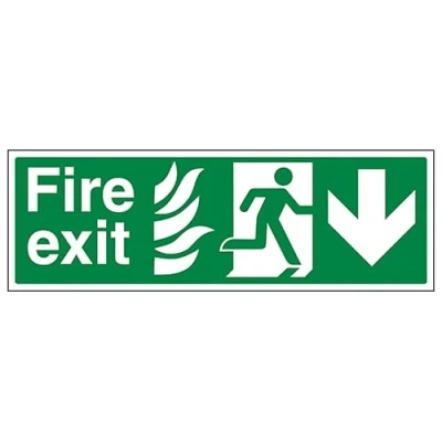 V Safety NHS Fire Exit Arrow Down 450 x 150 mm 3mm Aluminium Composite Sign