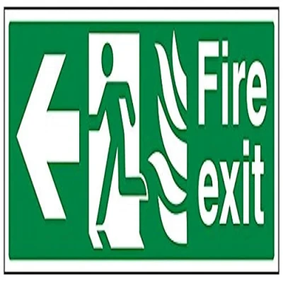 V Safety NHS Fire Exit Arrow Left Sign 450mm x 150mm Self Adhesive Vinyl