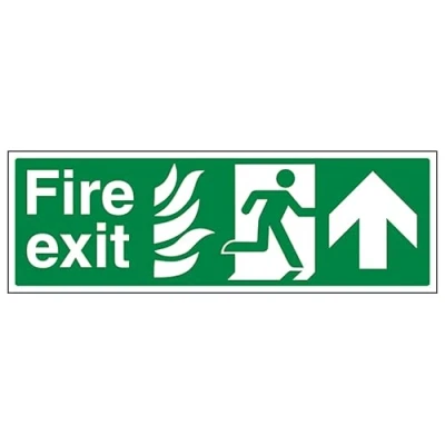 V Safety NHS Fire Exit Arrow Up 450 x 150 mm 3mm Brushed Aluminium Composite Sign