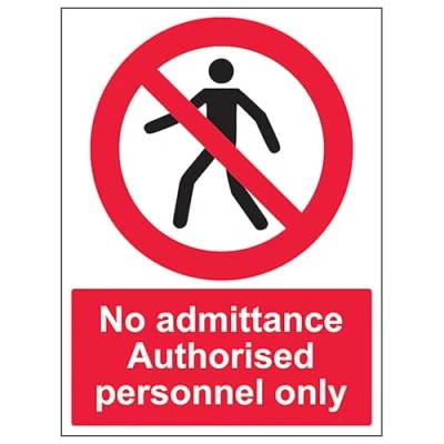 V Safety No Admittance Authorised Personnel Only 150 x 200 mm Self Adhesive Vinyl Aluminium Effect Sign