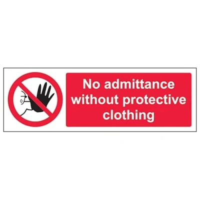 V Safety No Admittance Without Protective Clothing 300 x 100 mm Glow In The Dark Self Adhesive Vinyl Sign