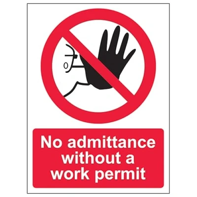 V Safety No Admittance Without Work Permit Portrait 200 x 300 mm 3mm Brushed Aluminium Composite Sign