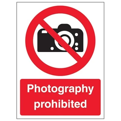 V Safety No Cameras Portrait 150 x 200 mm 2mm Super Tough Rigid Plastic Sign