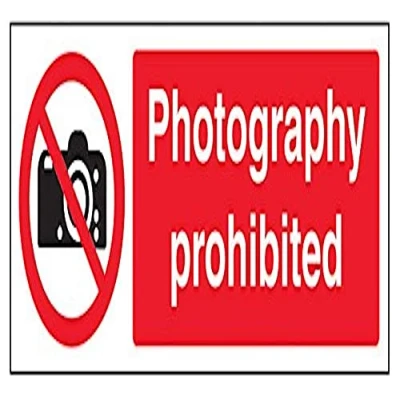 Clearly displays prohibited and potentially dangerous actions which employees and visitors must avoid in the interests of health and safety as per Health and Safety (Safety Signs & Signals) Regulations 1996 Conforms to EN ISO 7010:2012 - Prohibition signs feature a red circular symbol of at least 35% of the total sign area, on a white background, with a black pictogram Landscape Orientation. Sign reads "Photography Prohibited" Highly durable Self Adhesive Vinyl material and screen printed message will stand the test of time Sign measures 300 x 100mm. Self Adhesive material will adhere securely to most surfaces