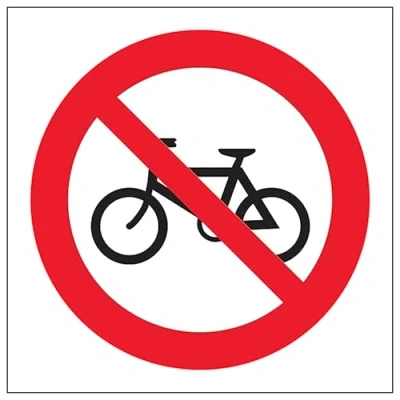 V Safety No Cycling Symbol 100 x mm 2mm Super Tough Rigid Plastic Sign