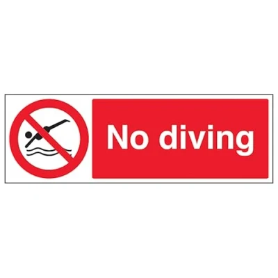 V Safety No Diving Landscape 300 x 100 mm 2mm Rigid Plastic Sign