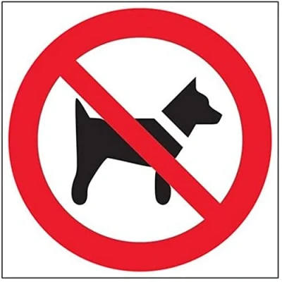 V Safety No Dogs Logo Prohibition Sign 400mm x 1mm Rigid Plastic