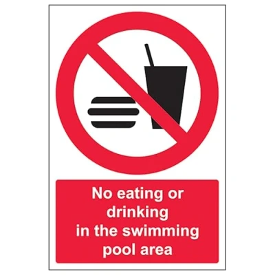 V Safety No Eating Or Drinking In The Swimming Pool Area Portrait 200 x 300 mm 2mm Super Tough Rigid Plastic Sign