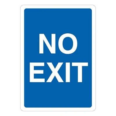 V Safety No Exit Blue 210 x 297 mm (A4) Glow In The Dark 1mm Rigid Plastic Sign