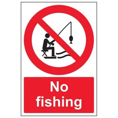 Clearly displays prohibited and potentially dangerous actions which employees and visitors must avoid in the interests of health and safety as per Health and Safety (Safety Signs & Signals) Regulations 1996 Conforms to EN ISO 7010:2012 - Prohibition signs feature a red circular symbol of at least 35% of the total sign area, on a white background, with a black pictogram Portrait Orientation. Sign reads "No Fishing" Highly durable 1mm plastic material and screen printed message will stand the test of time Sign measures 200 x 300mm