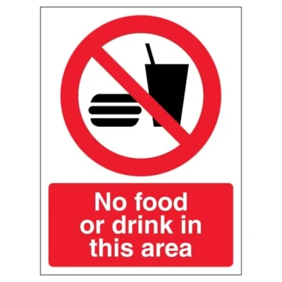 V Safety No Food Or Drink In This Area Portrait 150 x 200 mm Self Adhesive Vinyl Aluminium Effect Sign