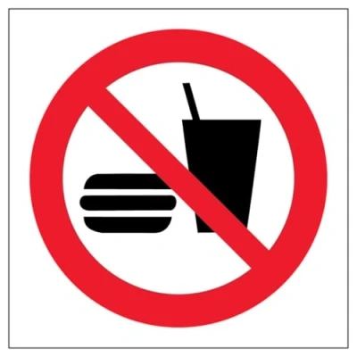 V Safety No Food Or Drink Symbol 100 x mm 3mm Aluminium Composite Sign