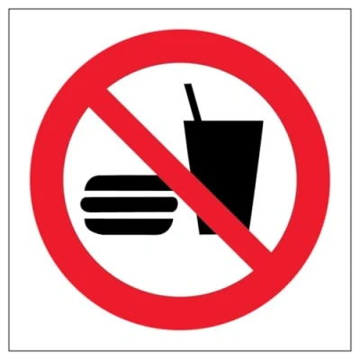 V Safety No Food Or Drink Symbol 100 x mm 3mm Brushed Aluminium Composite Sign