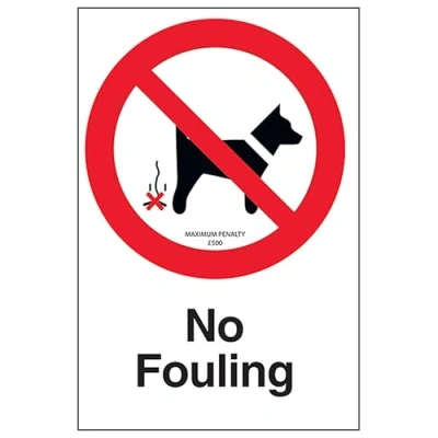 V Safety No Fouling Maximum Penalty £500 200 x 300mm 2mm Rigid Plastic Sign