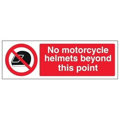 V Safety No Motorcycle Helmets Beyond This Point Landscape 300 x 100 mm Self Adhesive Vinyl Aluminium Effect Sign