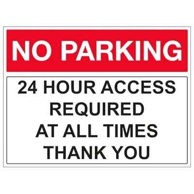 V Safety No Parking 24 Hour Access Required At All Times Thank You Landscape 600 x 450 mm 3mm Reflective Aluminium Composite Sign