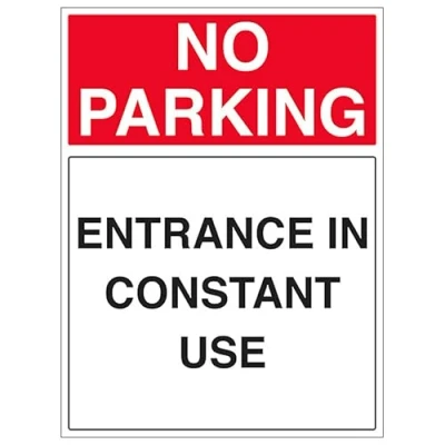 V Safety No Parking Entrance In Constant Use Portrait 300 x 450 mm 3mm Reflective Aluminium Composite Sign