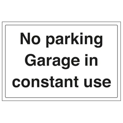 V Safety No parking Garage in constant use 600x400mm Self Adhesive Vinyl Sign