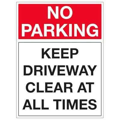 V Safety No Parking Keep Driveway Clear At All Times Portrait 300 x 450 mm 3mm Reflective Aluminium Composite Sign