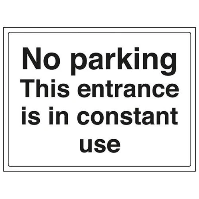 V Safety No Parking, This Entrance Is In Constant Use Parking Sign 300mm x 200mm 2mm Rigid Plastic