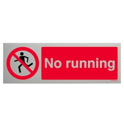 V Safety No Running With Man Landscape 300 x 100 mm 3mm Brushed Aluminium Composite Sign