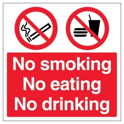 V Safety No Smoking Eating Drinking 300 x mm 3mm Brushed Aluminium Composite Sign