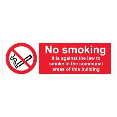 V Safety No Smoking In Communal Area Landscape 300 x 100 mm 3mm Brushed Aluminium Composite Sign