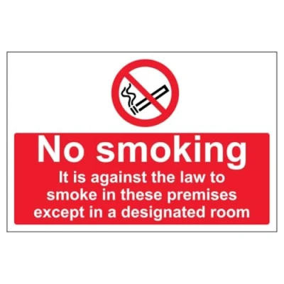 V Safety No Smoking In These Premises Except A Designated Room 300 x 200 mm 3mm Aluminium Composite Sign