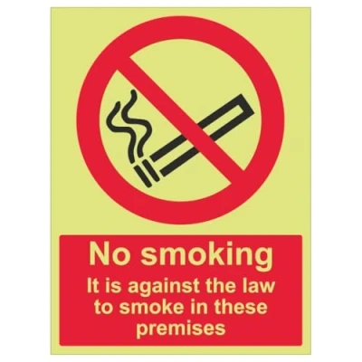 Legally required No Smoking sign, ensuring compliance with the UK Smoking Ban and workplace safety. Clearly marks smoke-free areas, protecting staff and visitors from second-hand smoke and fire risks. Complies with EN ISO 7010:2020, ensuring clear and universally recognised no smoking symbols. Expertly crafted with specialist tools, delivering clear, long-lasting signage for workplace safety. High-performance glow-in-the-dark material, exceeding Class B PSBA rating. Ensure good visibility in low-light conditions.
