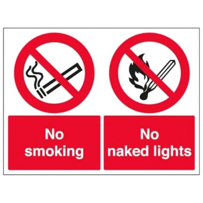 V Safety No Smoking/No Naked Lights 300 x 200 mm 3mm Aluminium Composite Sign