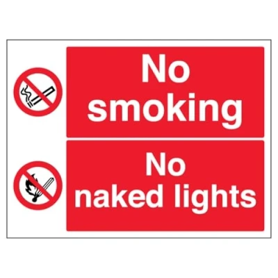 V Safety No Smoking/No Naked Lights 600 x 450 mm Glow In The Dark Self Adhesive Vinyl Sign