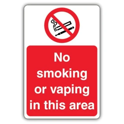V Safety No Smoking Or Vaping In This Area Sign 300 x 450 mm 2mm Rigid Plastic
